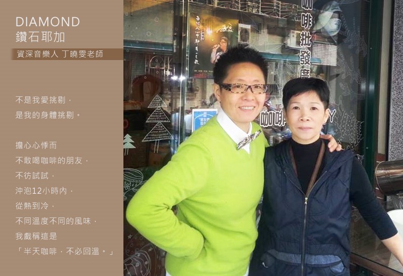 不是我愛挑剔,是我的身體挑剔。擔心心悸而不敢喝咖啡的朋友,不彷試試,沖泡12小時內,從熱到冷,不同溫度不同的風味,我戲稱這是「半天咖啡,不必回溫。」 —資深音樂人 丁曉雯老師