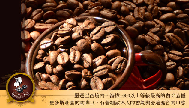 Candy’s Coffee頂級黃金曼巴咖啡豆,是嚴選巴西聖多斯產區莊園咖啡豆,混合蘇門答臘黃金曼特寧而成。