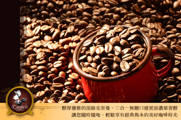 Candy’s Coffee嚴選數種高海拔莊園高級豆種,經人工反覆篩選出最高品質咖啡豆,由30年烘豆資歷之資深烘豆師,專業調配出入口柔滑,馥郁甘醇的極致口感!入口柔滑,馥郁甘醇,將克里曼特級咖啡豆滑順入喉的質感完美呈現,其獨一無二略帶果香的甘醇,讓人難忘。